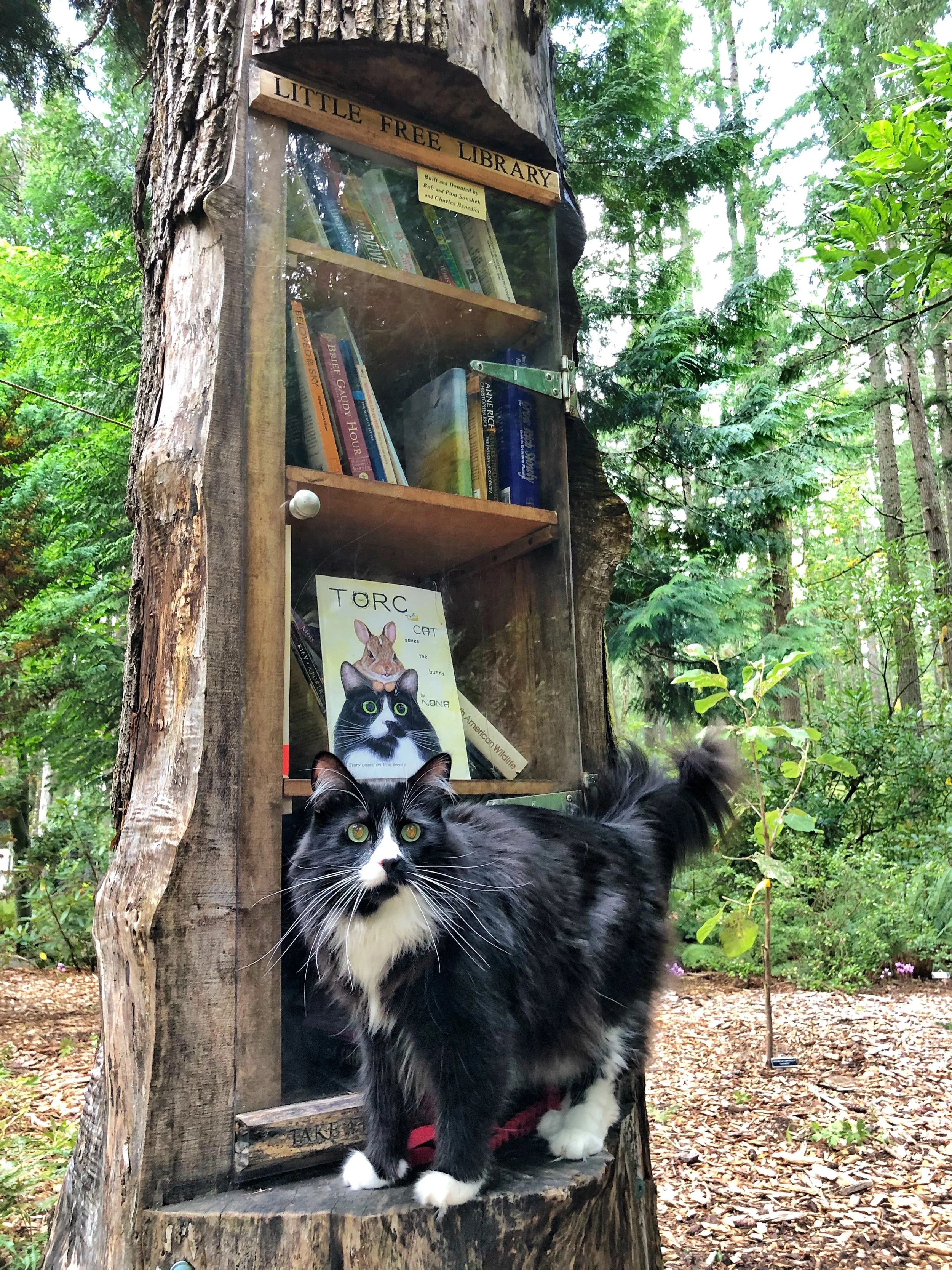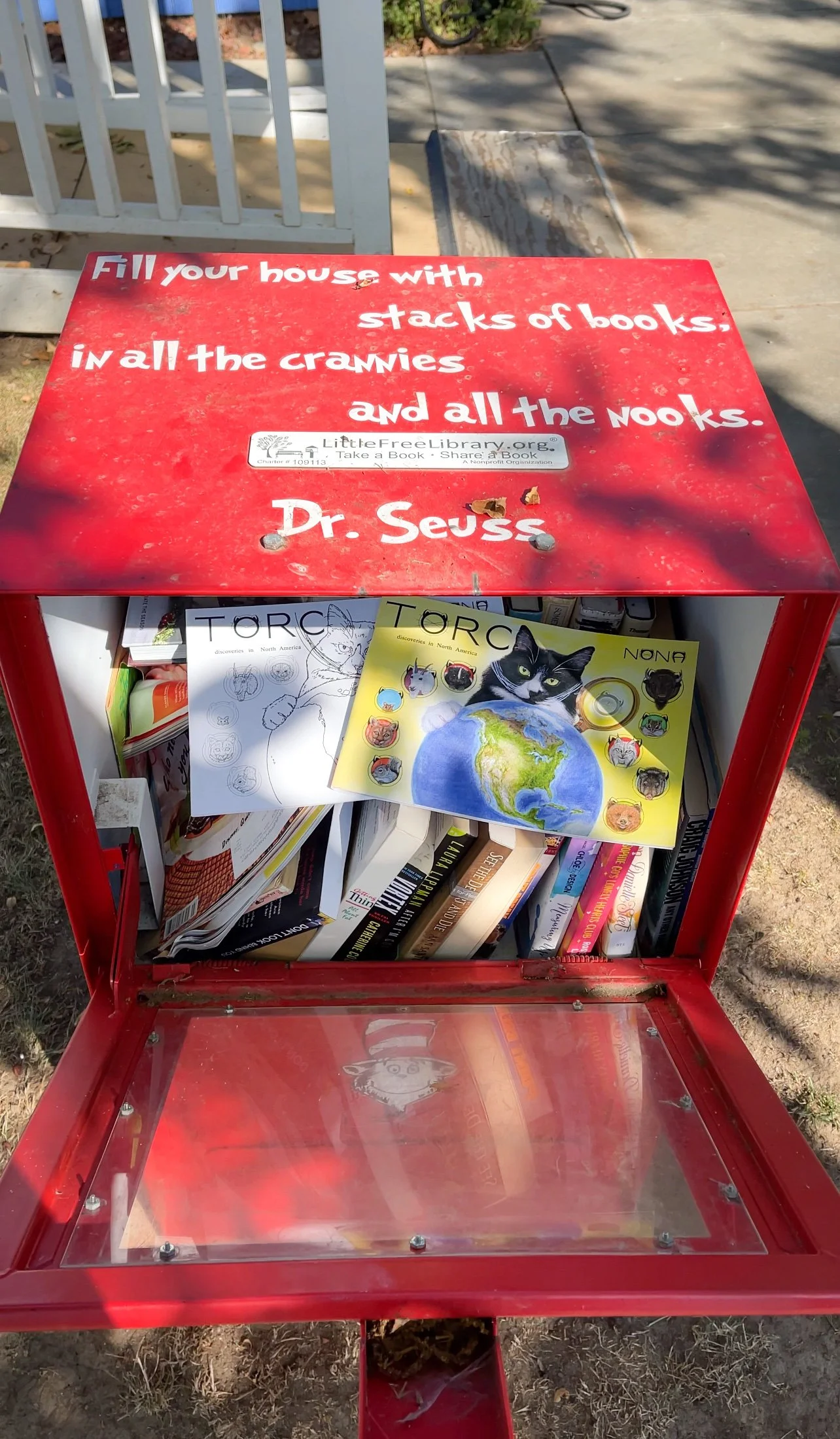 TORC visited a total of 15 Little Free Libraries in Sacramento, California, where he donated 42 books. The first-time finders got a coloring book as a bonus to the matching TORC the CAT children's books.